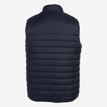 This sleeveless, padded vest features a high collar for added warmth and a full-length zip with a protective chin guard for extra comfort. Two discreet zip pockets provide practical storage, while the elasticated waist ensures a snug fit without restricting movement.